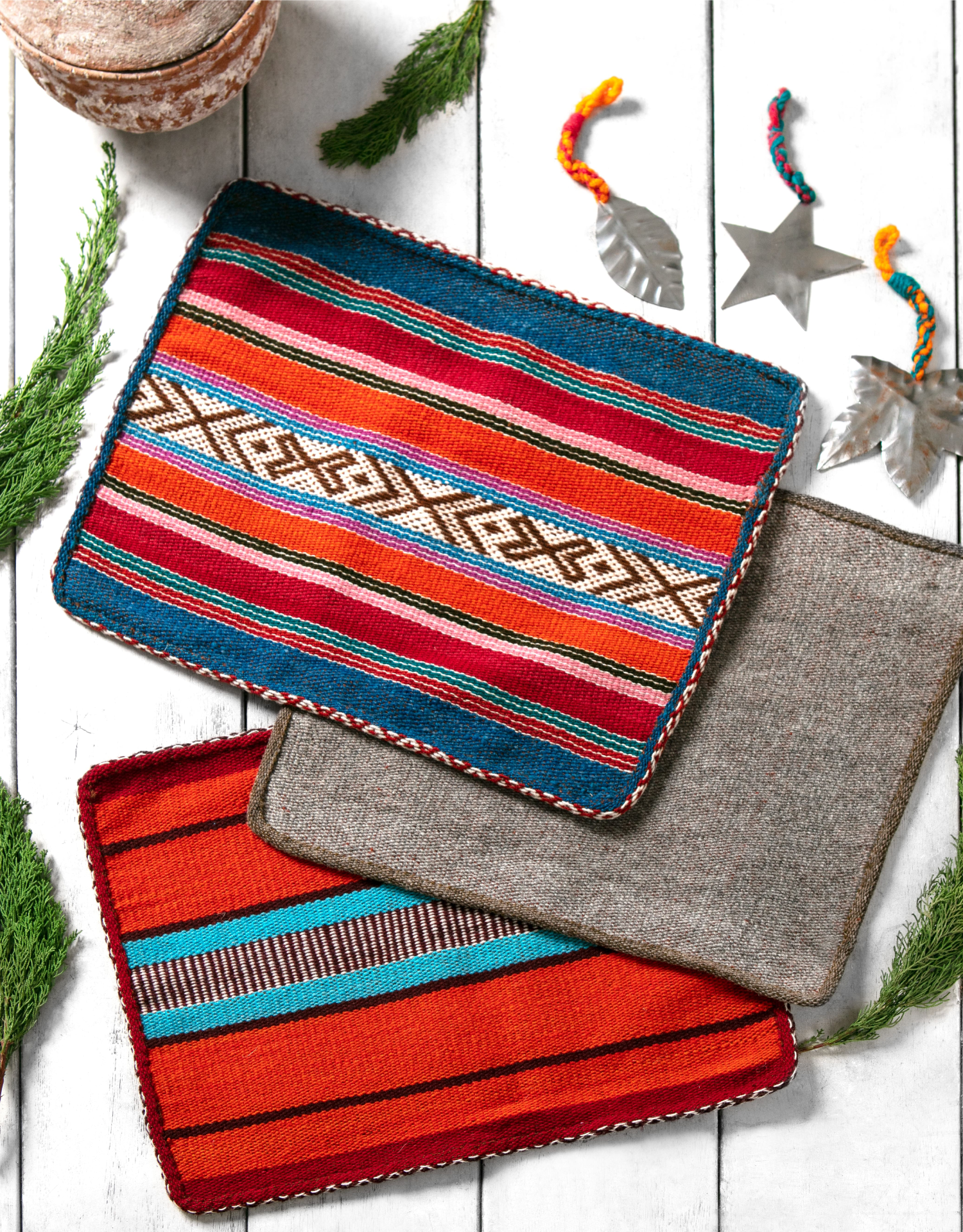 Nuestra colección navideña "KUSI", que significa "alegría" en Quechua, es un elegante ensamblaje de accesorios y textiles hechos a mano. Buscamos transmitir felicidad a través de colores vibrantes, la sensación de un hogar acogedor para disfrutar con la familia y amigos.