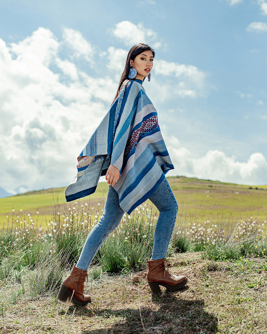 Cada una de nuestras capas es una obra maestra, tejida con amor y dedicación por talentosas tejedoras de Comunidades Altoandinas de Cusco, Perú.
