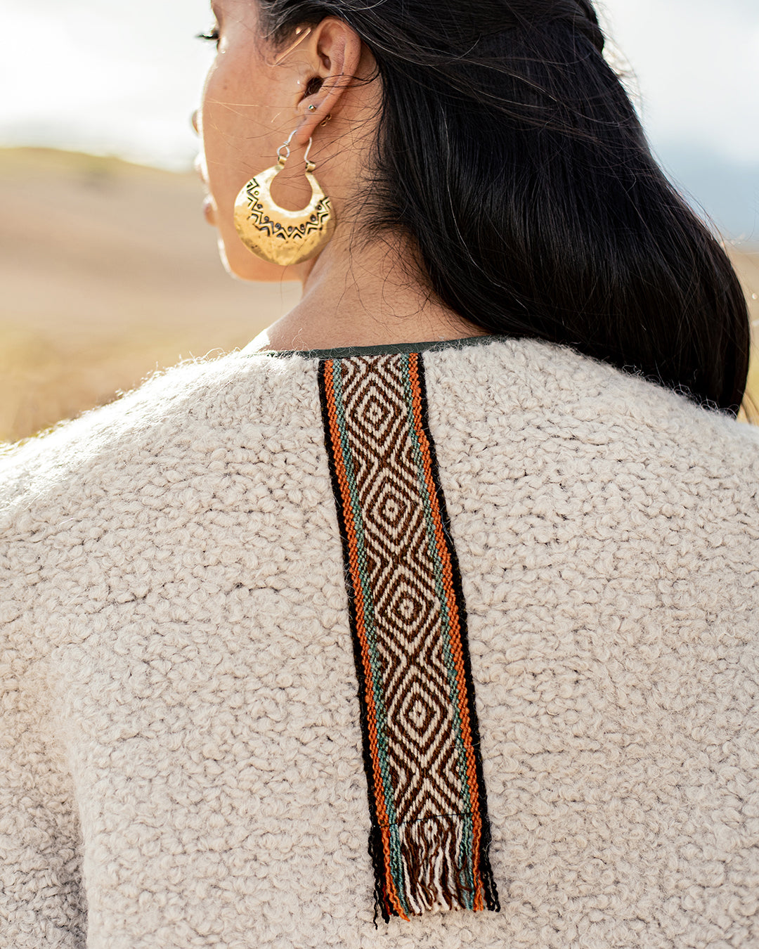 Nuestras casacas llevan un toque de autenticidad y tradición. Cada una está adornada con una cinta de telar, tejida a mano por hábiles artesanas de Comunidades Altoandinas de Cusco, Perú. Este detalle, hace que cada casaca sea una pieza única.
